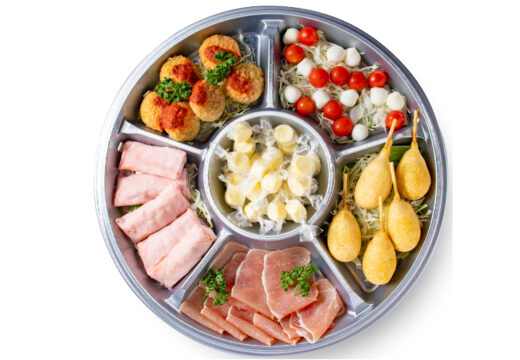 生ハムなどのシャルキュトリーと、チーズを贅沢に盛り合わせたプレートです。ワインやシャンパンとの相性も抜群で、上質なひとときを演出します。味わい・彩りともにバランスが良く、企業パーティーやレセプション、懇親会など、フォーマルなシーンにおすすめ。シンプルながらも存在感のある一皿が、テーブルを華やかに彩ります。素材の持ち味を生かした本格的な味わいを、ぜひお楽しみください。 【内容】チーズリゾットコロッケ、ブリト―、ミニチーズドッグ、キャンディチーズ、カプレーゼ、生ハム